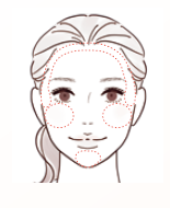 ◯ 頬以外の部分の、あご先・こめかみ・髪の生え際に